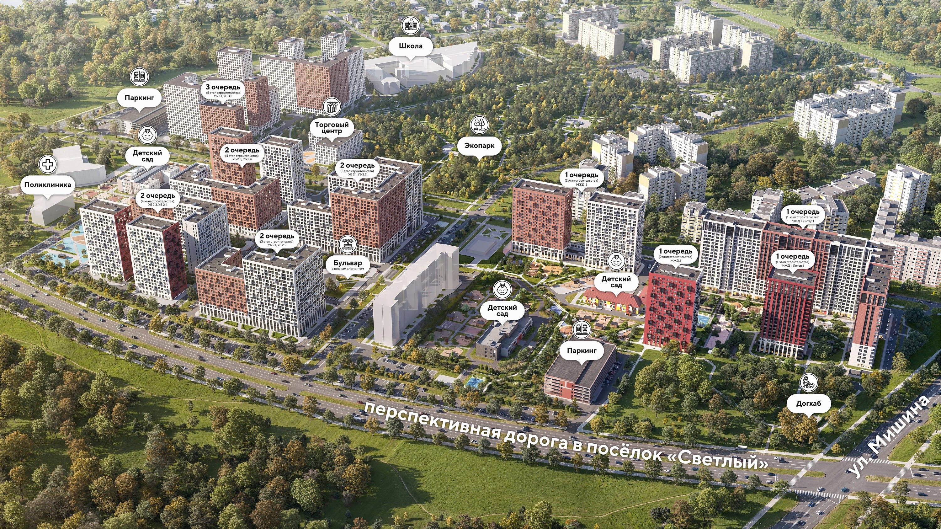 Тихий и уютный жилой квартал просто создан для счастливой жизни. Здесь растят детей, общаются с друзьями, занимаются спортом, гуляют по экопарку и наслаждаются каждой минутой в кругу близких людей.